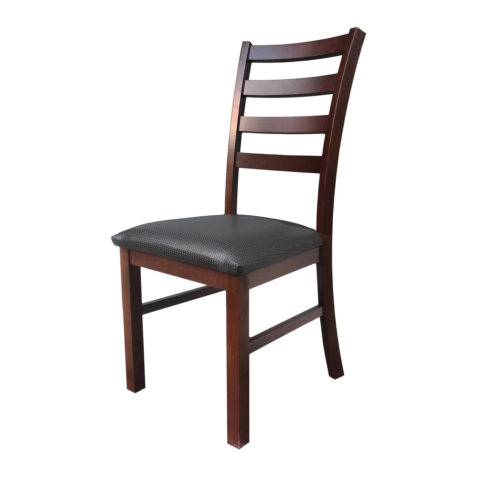 Madera de pino y cubiertas de MDF pintado en color nogal, silla acojinamiento en tactopiel color negro